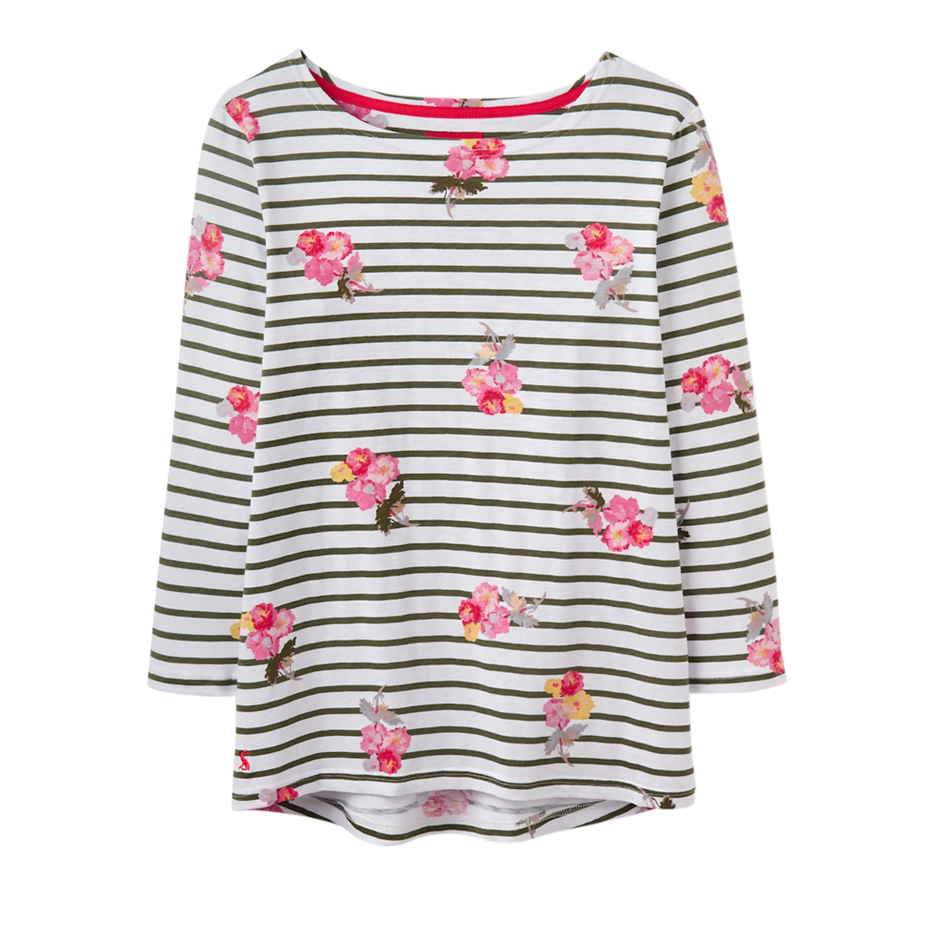 Classic striped Harbour top with floral print, curved hem, relaxed fit, hare embroidery, slub jersey, 100% cotton, machine washable.